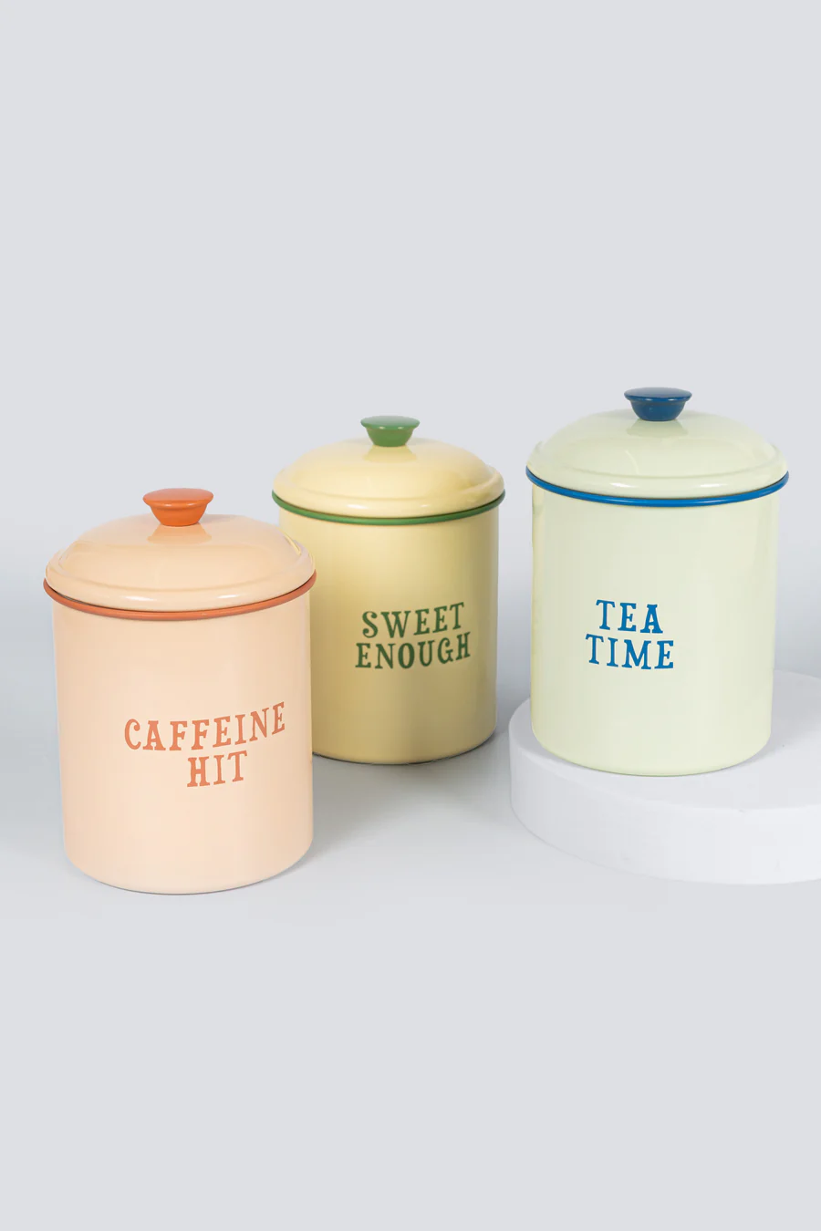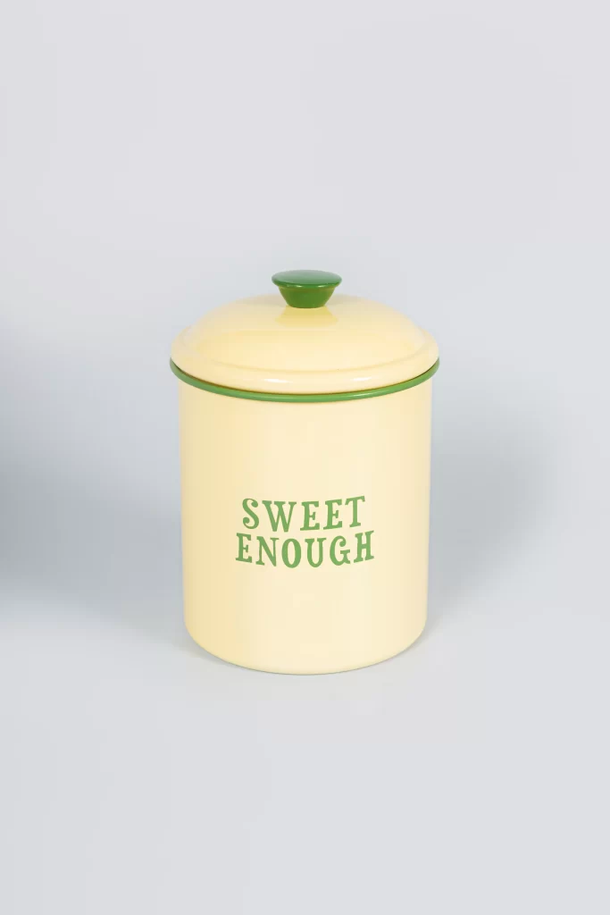 Organiza tu reserva de azúcar con este bote pastel de Yvonne Ellen. Su aspecto vintage esmaltado, acompañado de un eslogan descarado, añade un toque juguetón a cualquier cocina. Mantén el azúcar fresco y añade un toque de fantasía a tu hogar. ¡Crea un set completo con nuestros botes de té y café también!