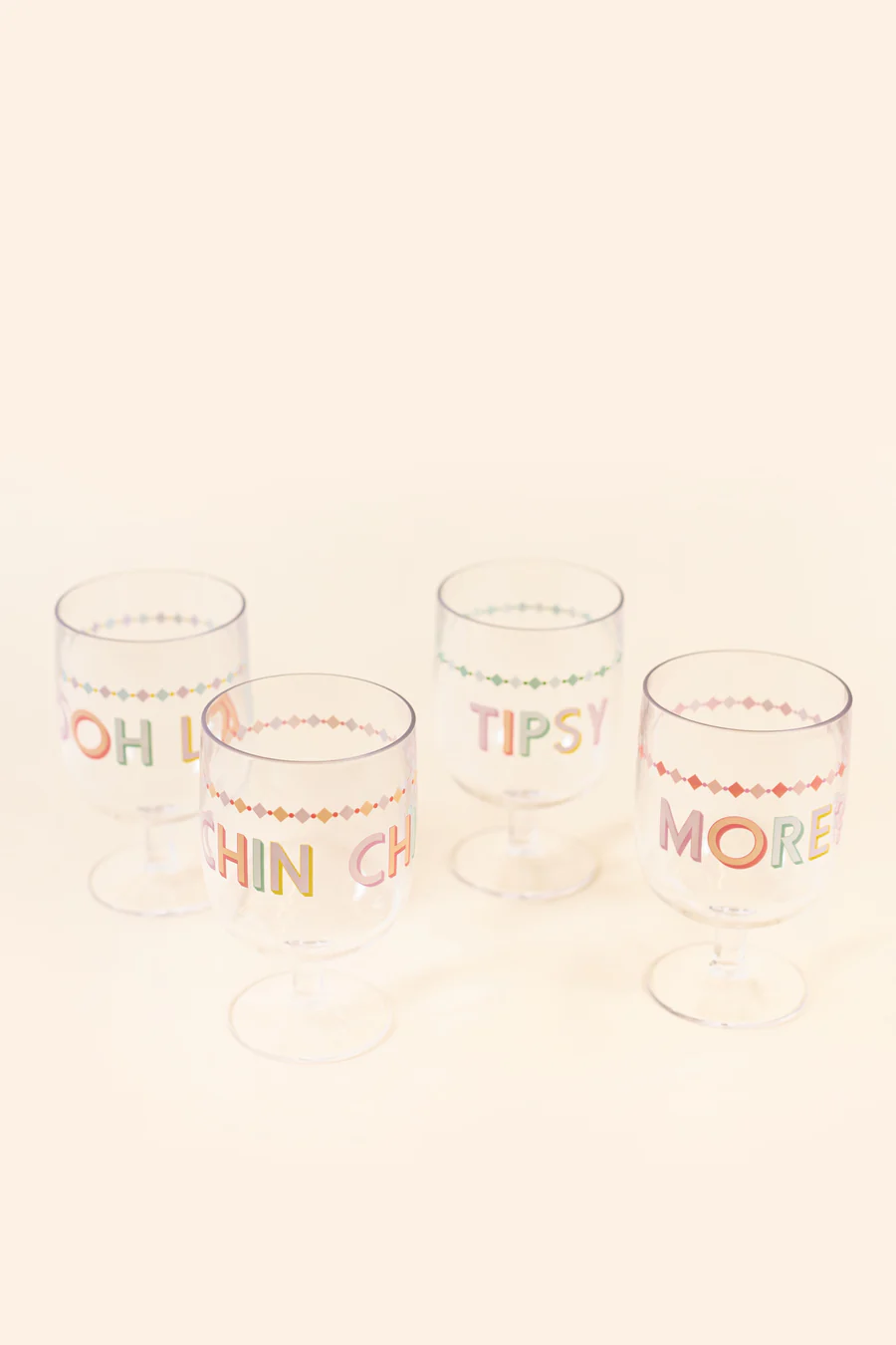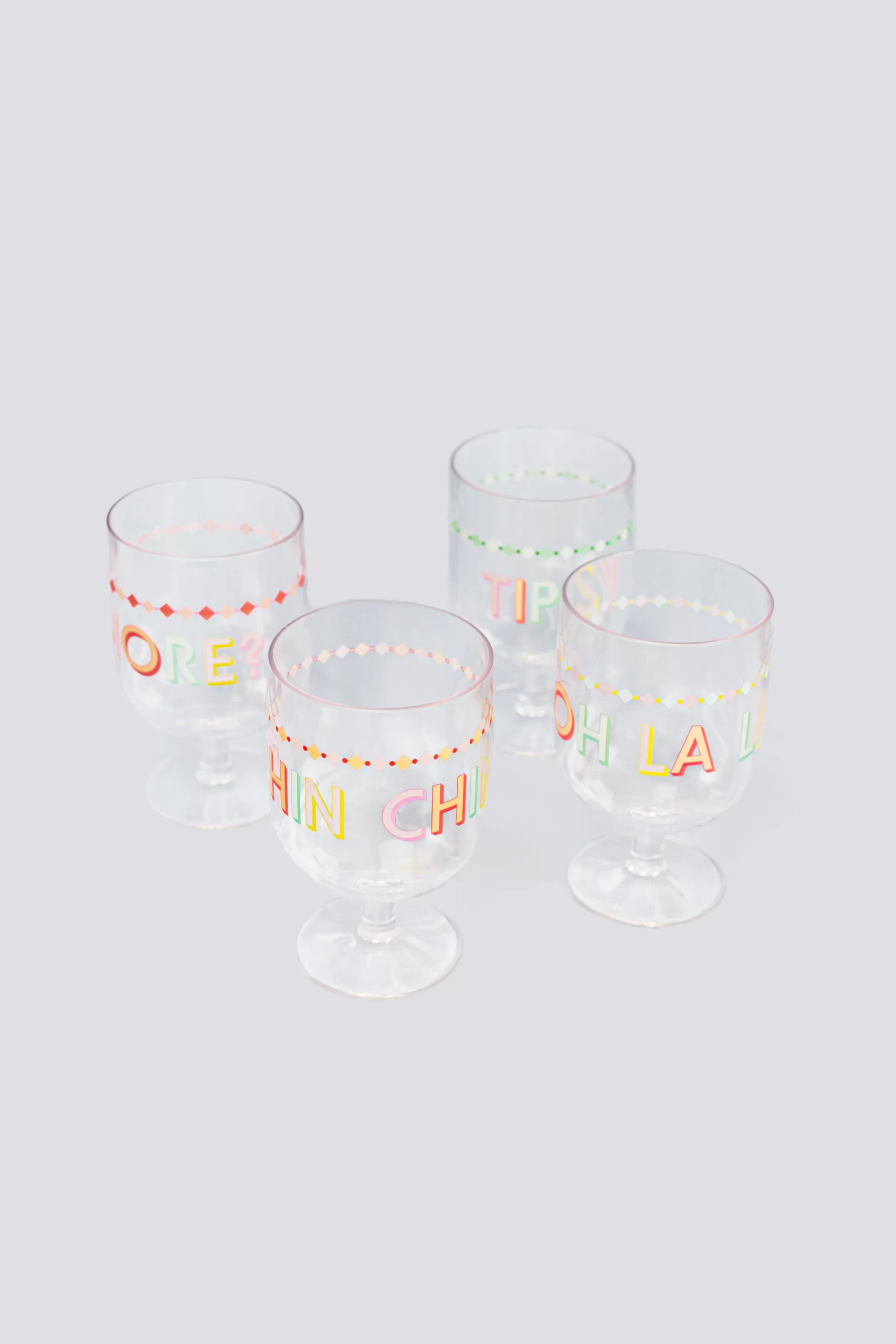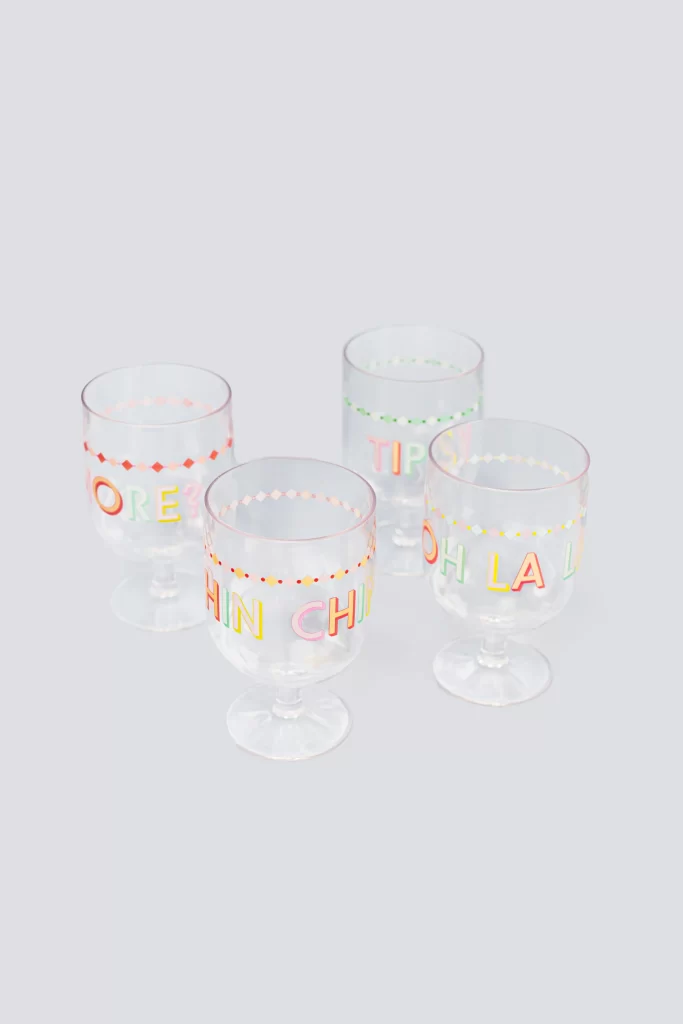 Eleva tu experiencia de comedor al aire libre con las copas de vino de plástico Yvonne Ellen. Hechas de plástico transparente, estas copas de vino cuentan con eslóganes coloridos y caprichosos para agregar un toque lúdico a su picnic o reuniones con alcohol. Bebe con estilo con este elegante y versátil juego de cuatro.