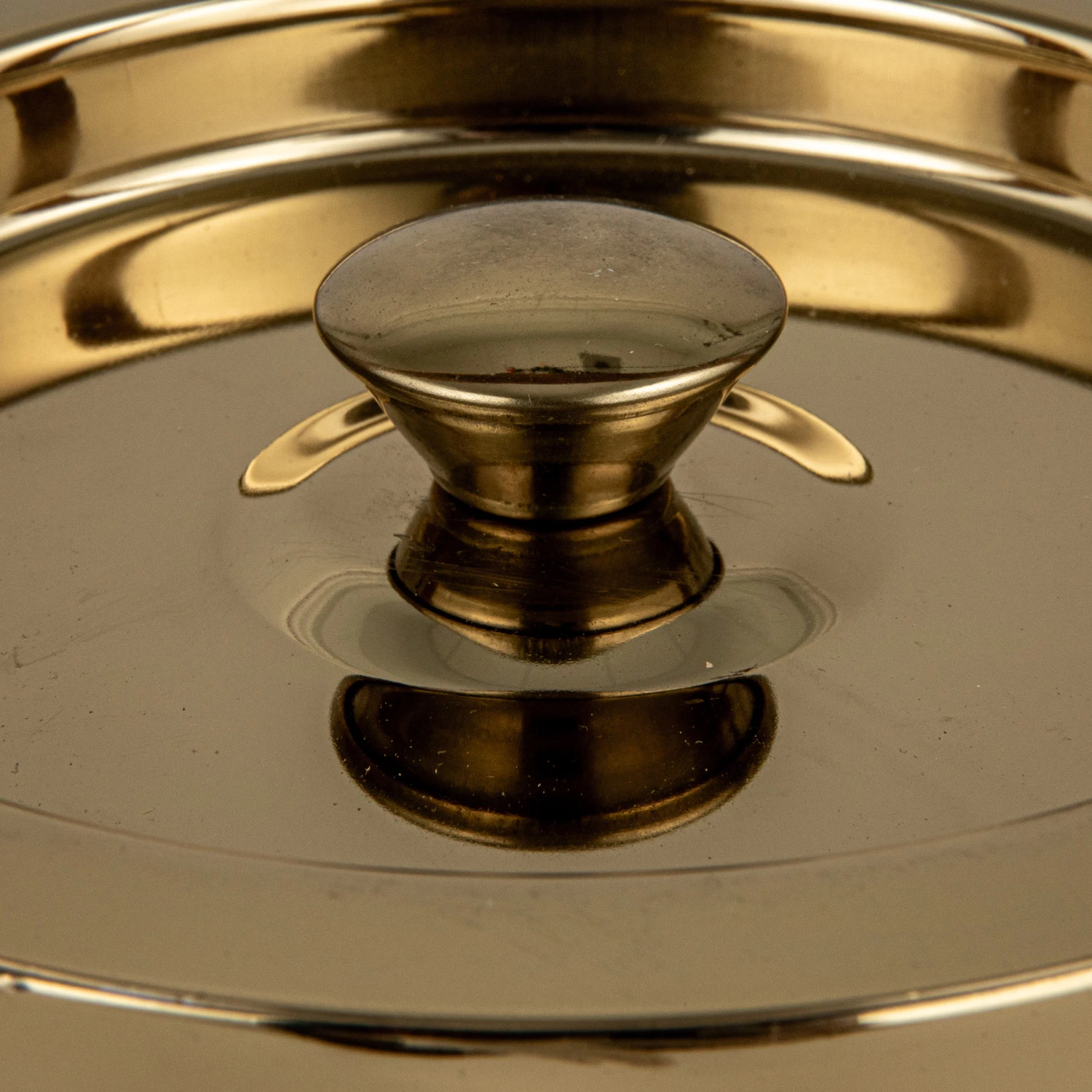 Este cubo de hielo de 3 cuartos de acero inoxidable y ratán es una pieza declarativa que combina practicidad con un diseño sofisticado. El acabado dorado brillante del acero inoxidable proporciona un contraste sorprendente con el encanto rústico de la envoltura de ratán, lo que lo convierte en un accesorio versátil para varios estilos de decoración, desde boho hasta campestre francés. Con unas medidas de 24 cm de largo y 19 cm de alto, es lo suficientemente grande como para contener una generosa cantidad de hielo, asegurando que las bebidas se mantengan frías durante cualquier evento. La forma redonda añade un toque de suavidad, invitando a cualquiera a alcanzar una bebida refrescante. Ya sea que se use para ocasiones especiales o para la elegancia diaria, este cubo de hielo es un artículo imprescindible para quienes aprecian una mezcla de artesanía artesanal y diseño chic.