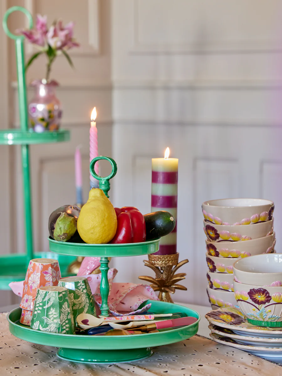 Muestra todas tus preciosidades con esta elegante etagère verde. Está hecha de metal, lo que la hace súper duradera y apta para llevar todo tipo de objetos.
