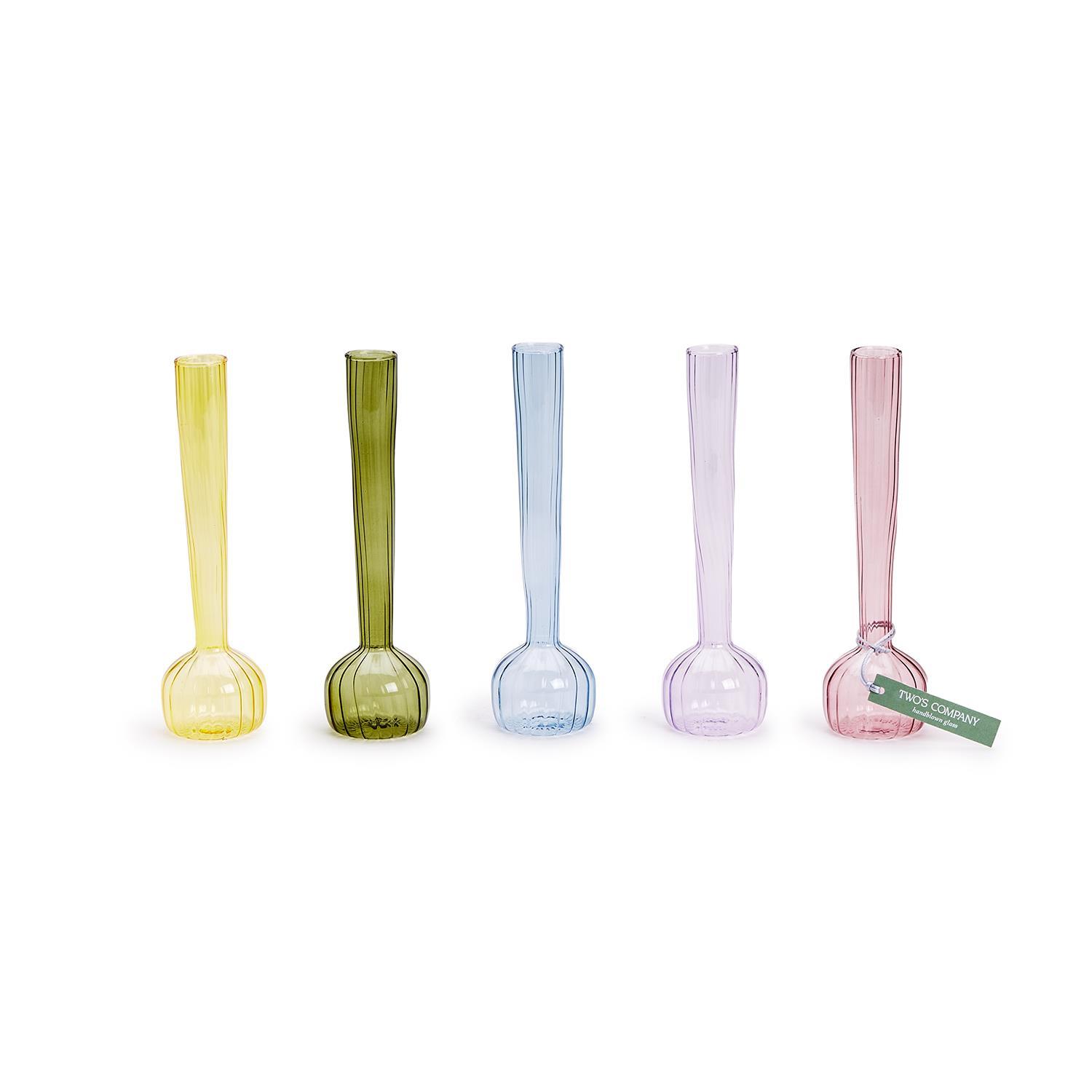 Eleva la decoración de tu hogar con nuestro exquisito Jarrón de Boda Espiral de Vidrio Soplado a Mano, disponible en cinco colores vibrantes: Rosa, Lavanda, Azul, Amarillo y Verde. Cada jarrón está meticulosamente elaborado a través del delicado arte del vidrio soplado a mano, creando una pieza única y cautivadora que añade un toque de elegancia a cualquier espacio. Cada jarrón de botón es soplado a mano de manera individual por artesanos hábiles. Disponible en cinco colores: Rosa, Lavanda, Azul, Amarillo y Verde, lo que te permite combinar o contrastar fácilmente con tu decoración existente. Puedes exhibirlo como un acento independiente o agruparlo. La simplicidad del diseño en espiral muestra los botones de flores de una manera sofisticada. Regala un detalle considerado y único para ocasiones especiales como cumpleaños, bodas o inauguraciones.