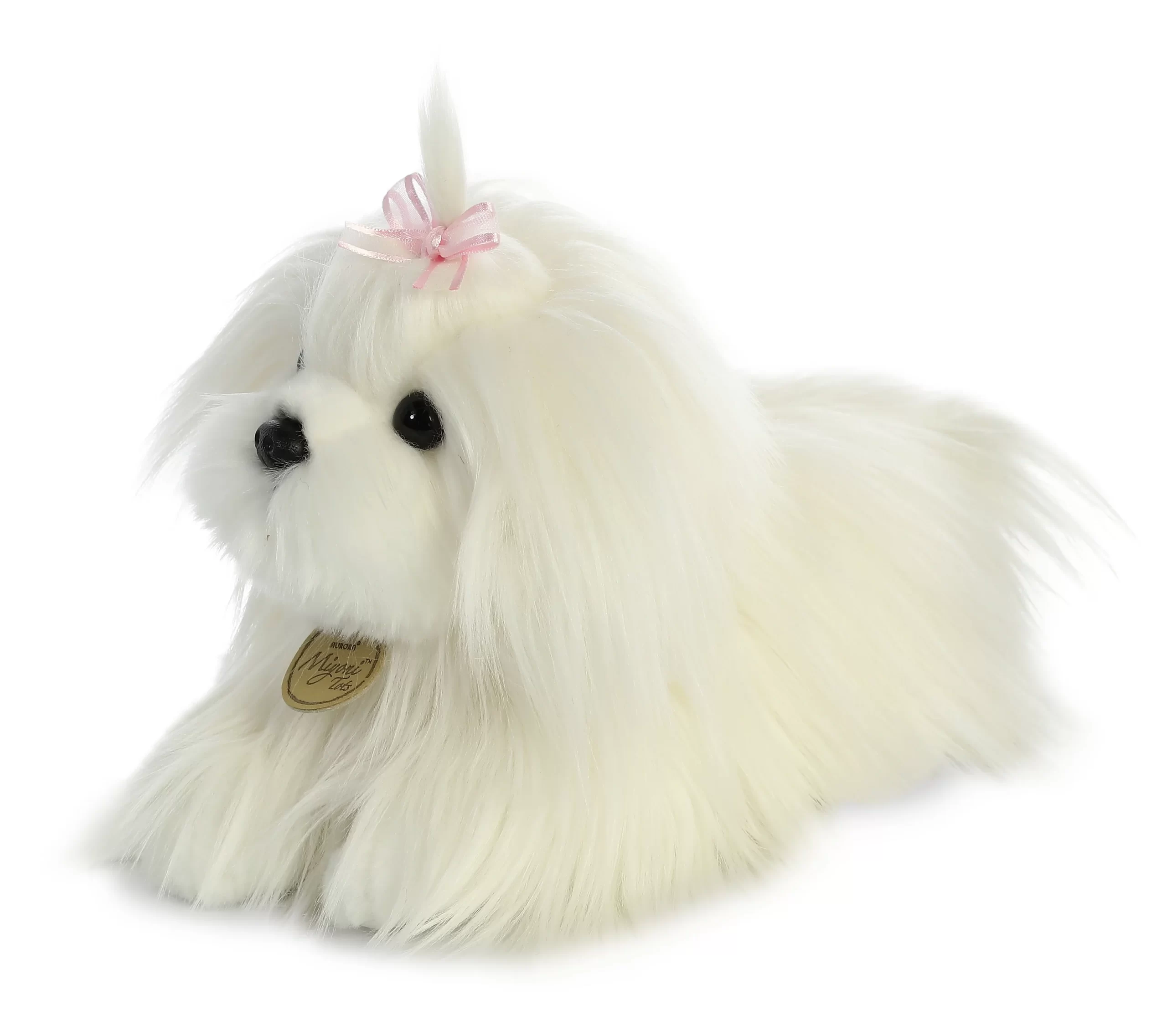 Miyoni presenta tus animales favoritos en forma de peluche con un diseño que es a la vez realista y adorable. ¡Este cachorro Maltés es completamente blanco con un pequeño toque de rosa!