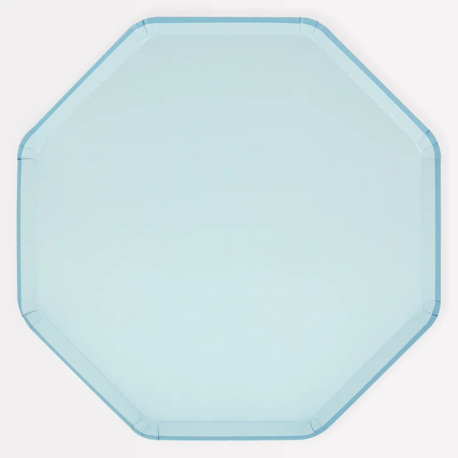 Haz que la mesa de tu fiesta luzca soñadora con estos platos de papel azul cielo de verano. Están bellamente diseñados con el color en la parte delantera y trasera, y tienen una forma octagonal para un aspecto llamativo. Son perfectos para un baby shower, fiestas de cumpleaños o para dar a cualquier cena un ambiente fresco y tranquilo. Los platos son parte de nuestra nueva y elegante propuesta de menaje de mesa combinable.