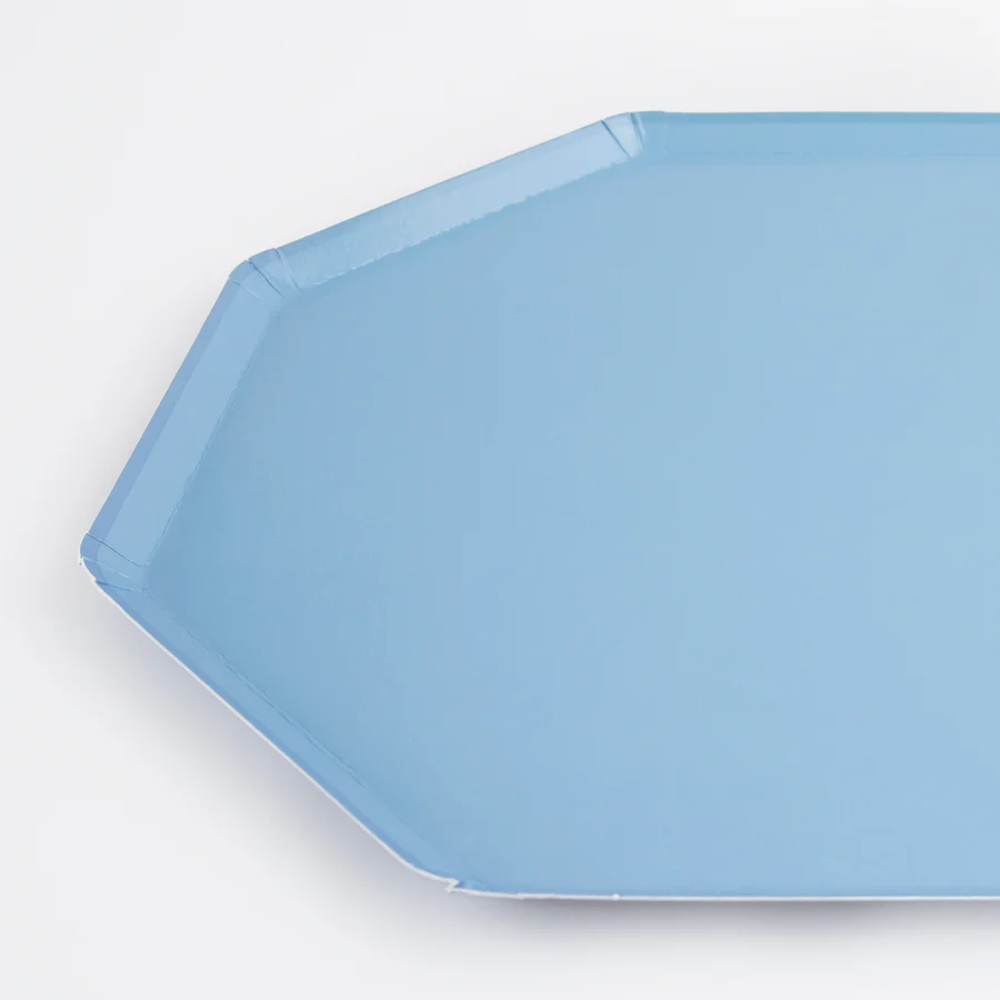 La forma octagonal de estos platos de papel, combinada con un suave color azul en la parte delantera y trasera, los convierte en una opción llamativa para tu fiesta o cena especial. Son perfectos para un baby shower, fiesta de cumpleaños o cualquier celebración donde quieras una paleta de colores calmante. Los platos son parte de nuestra nueva y elegante propuesta de menaje que mezcla y combina.