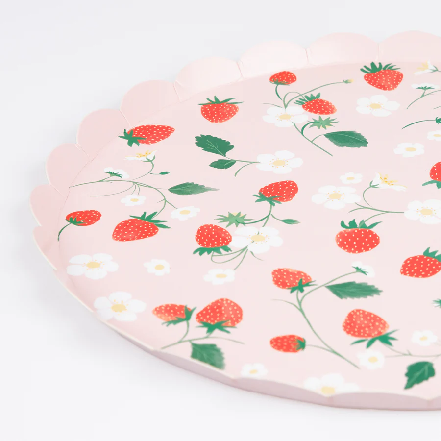 Las fresas son veraniegas y dulces, así que no es de extrañar que este diseño afrutado esté en tendencia. Estos platos grandes de papel con un borde elegante y festoneado son perfectos para picnics, fiestas en el jardín y fiestas de tenis, para llevar la belleza de la naturaleza a tu celebración.