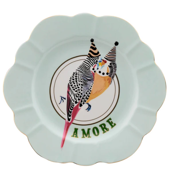 ¡Definitivamente un plato favorito nuevo! Nuestros loros se sientan orgullosos en este plato de flores de estilo vintage. El borde en forma de festonado hace que este plato sea seguro el plato estrella de tu colección de vajilla. Un fondo azul pastel y un detalle dorado de foil están unidos con un eslogan peculiar. ¡Qué único!