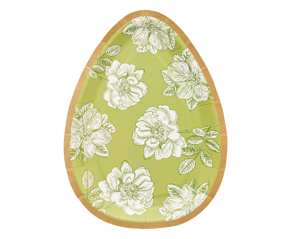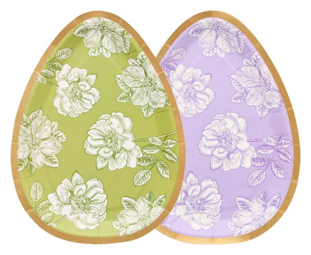 ¡Platos con forma de huevo de pascua con diseño floral, bellos! para acompañar tu mesa.