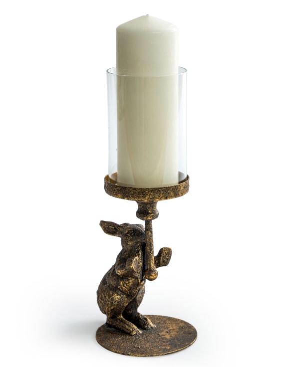 Portavela de conejo antiguo con cubierta de vidrio