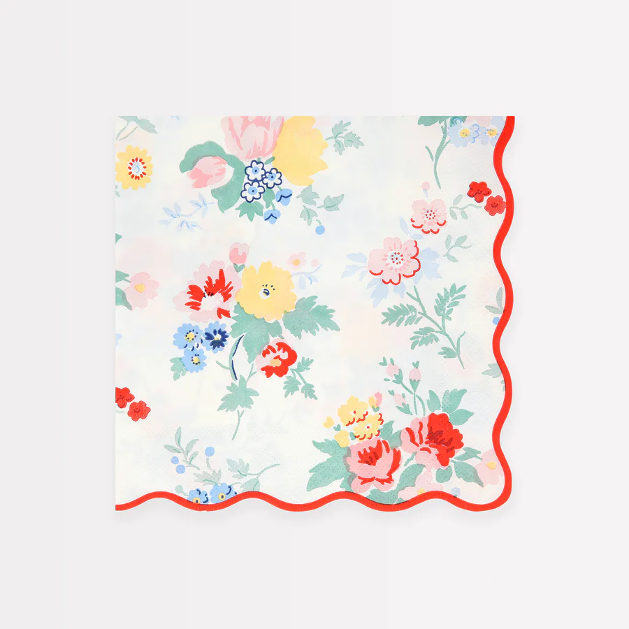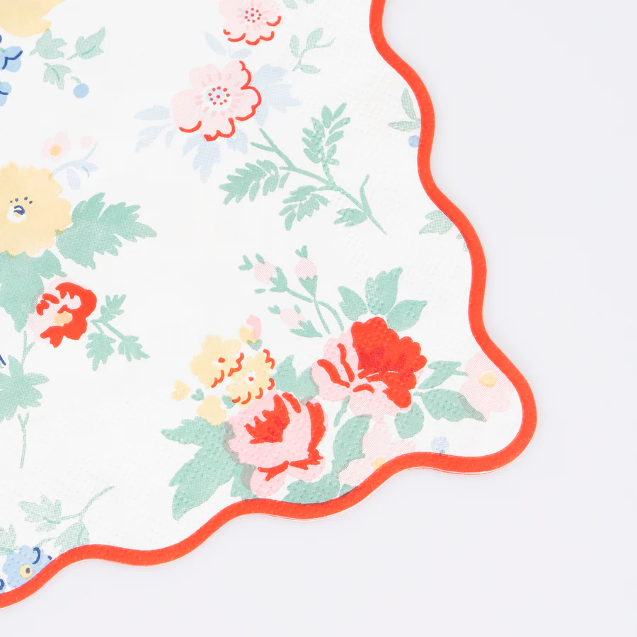 Los delicados ramos de flores añaden una elegancia sin esfuerzo a cualquier ambiente. Este diseño clásico está influenciado por las tendencias de patrones florales de estilo vintage, que incluyen un toque de rojo para mantener el aspecto moderno y fresco. Usa estas grandes servilletas de papel, con un borde ondulado, para baby showers, despedidas de soltera, té de la tarde, fiestas en el jardín o dondequiera que desees un efecto sofisticado.