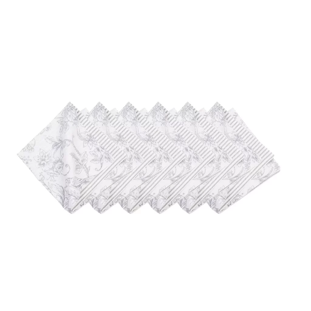 Con pájaros cantores caprichosos y otros motivos naturales en una relajante paleta de colores gris y blanco, la colección de manteles Callahan Songbirds es una manera encantadora de estilizar cualquier mesa, incluyendo la servilleta reversible a juego. El encantador patrón floral y de damasco se invierte a un simple patrón de rayas en colores coordinados para más opciones de estilo. ¿Te gusta este aspecto? Callahan Songbirds