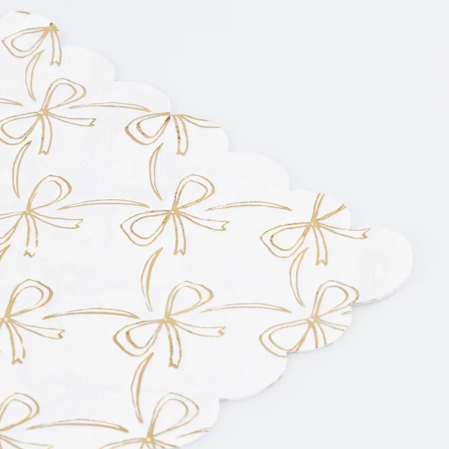 Añade estilo a tu fiesta con estas elegantes servilletas de papel. La combinación de lazos dorados y un borde festoneado garantiza una sofisticación sin esfuerzo a su mesa, haciendo que cada ambiente brille. Las servilletas desechables nunca han sido tan elegantes y son perfectas para que las use toda la familia. Ideal para Navidad, Año Nuevo, bodas de oro, despedidas de soltera y cumpleaños especiales.
