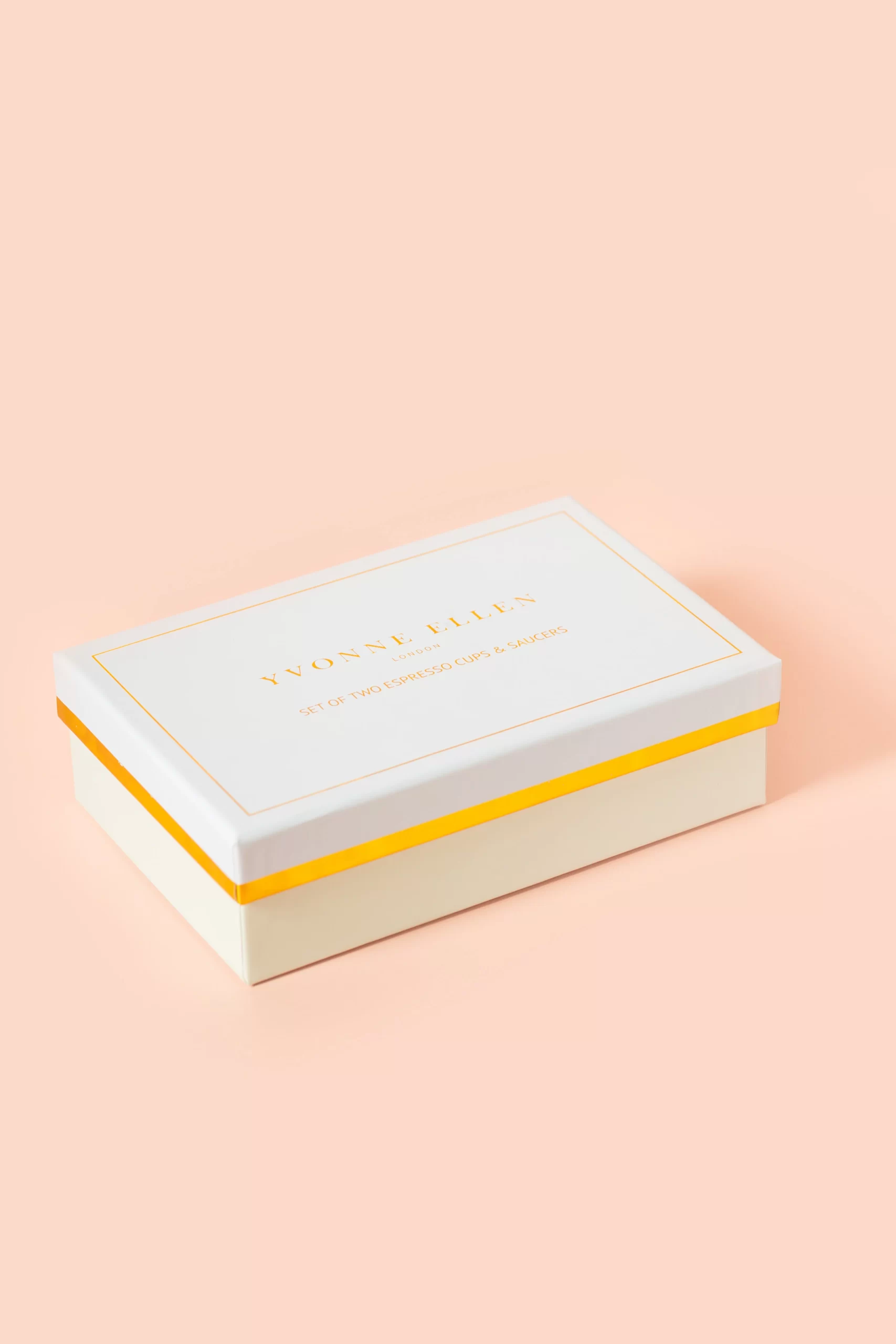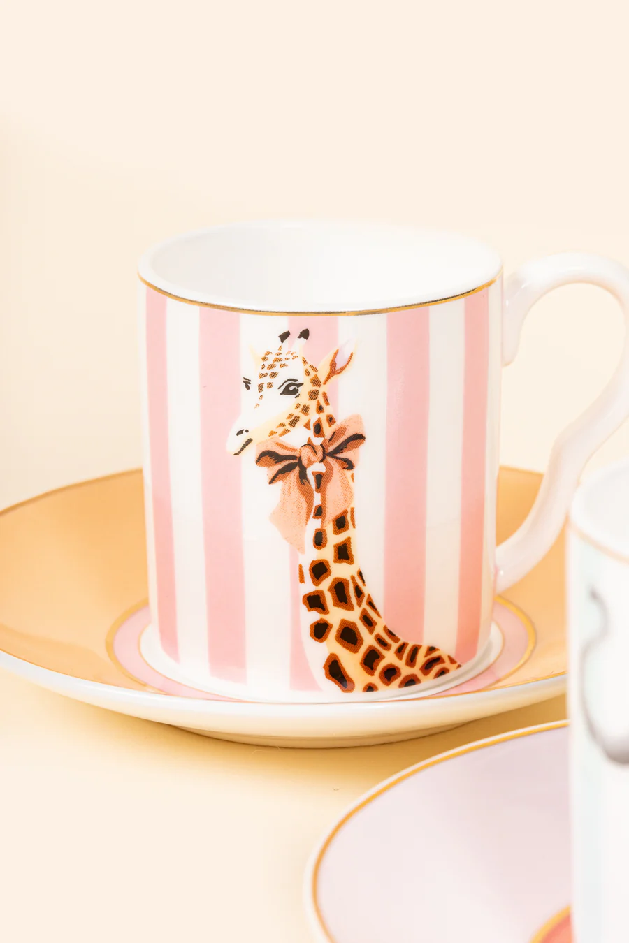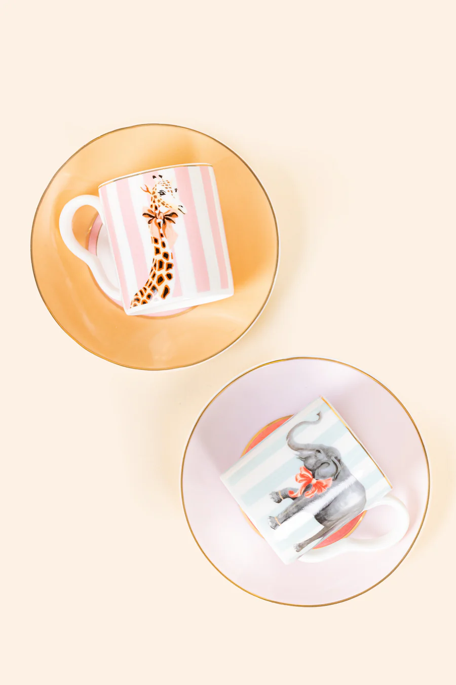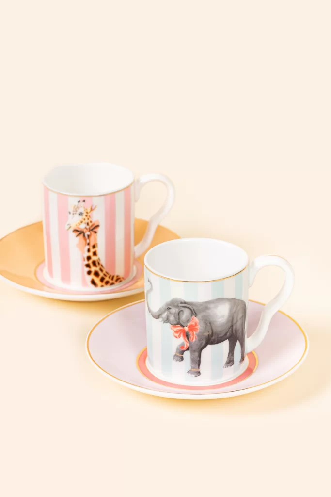 Este peculiar conjunto es la encarnación del estilo de Yvonne Ellen: la vida animal yuxtapuesta en composiciones originales y coloridas. Las tazas y platillos de espresso pastel están adornados con dos de mis animales icónicos decorados con accesorios cursis. ¡El tamaño perfecto para un café para recoger!
