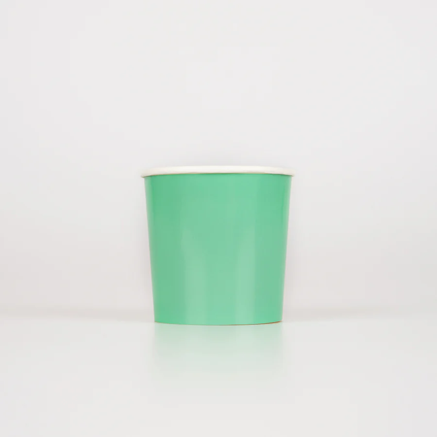 El color verde esmeralda se asocia con la naturaleza, los nuevos comienzos, la salud y la riqueza. Así que estas hermosas tazas son perfectas para una fiesta en el jardín, un baby shower, una reunión en un nuevo hogar, o cualquier cumpleaños o comida familiar para celebrar la felicidad y la salud. Las tazas son parte de nuestra nueva y elegante propuesta de menaje que combina diferentes estilos.