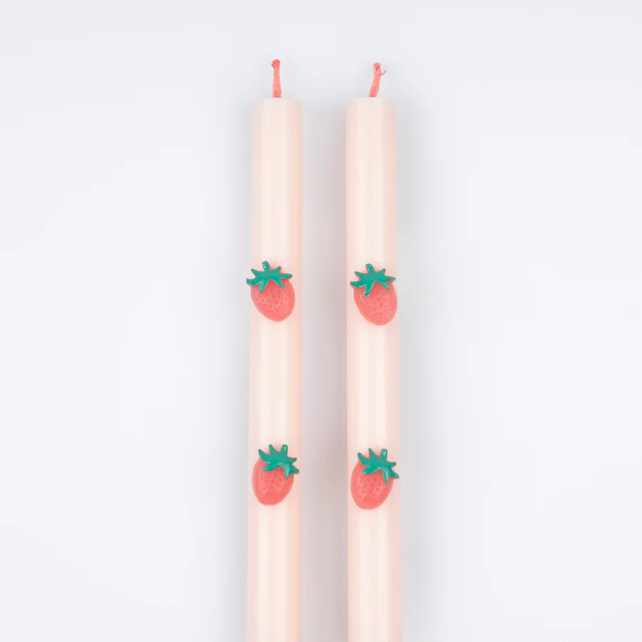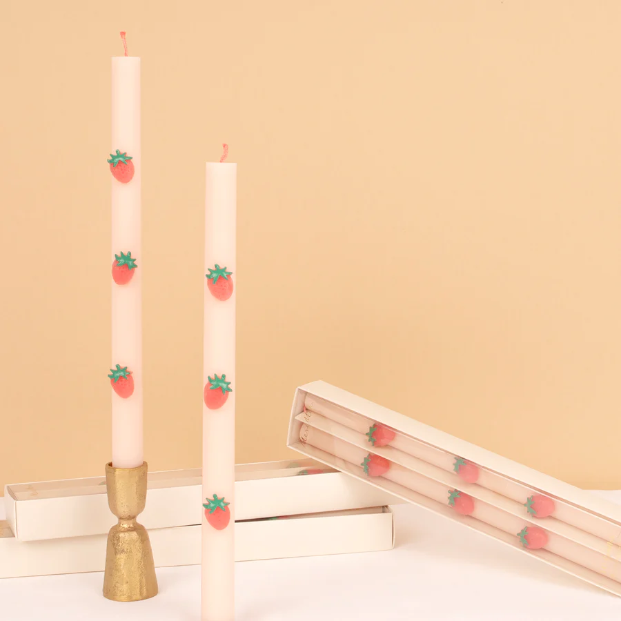 Las fresas son un diseño afrutado y veraniego que está de moda en este momento. Estas velas decorativas son perfectas para realzar cualquier mesa de fiesta, o colocarse en la repisa. Enciéndelas para un brillo cálido, o muéstralas y reutilízalas una y otra vez. El suave rosa combina maravillosamente con las fresas rojas para un toque moderno. Mira de cerca y verás que las mechas son de color rojo, es esta atención al detalle lo que hace que estas velas altas sean ideales como regalo para el anfitrión también.