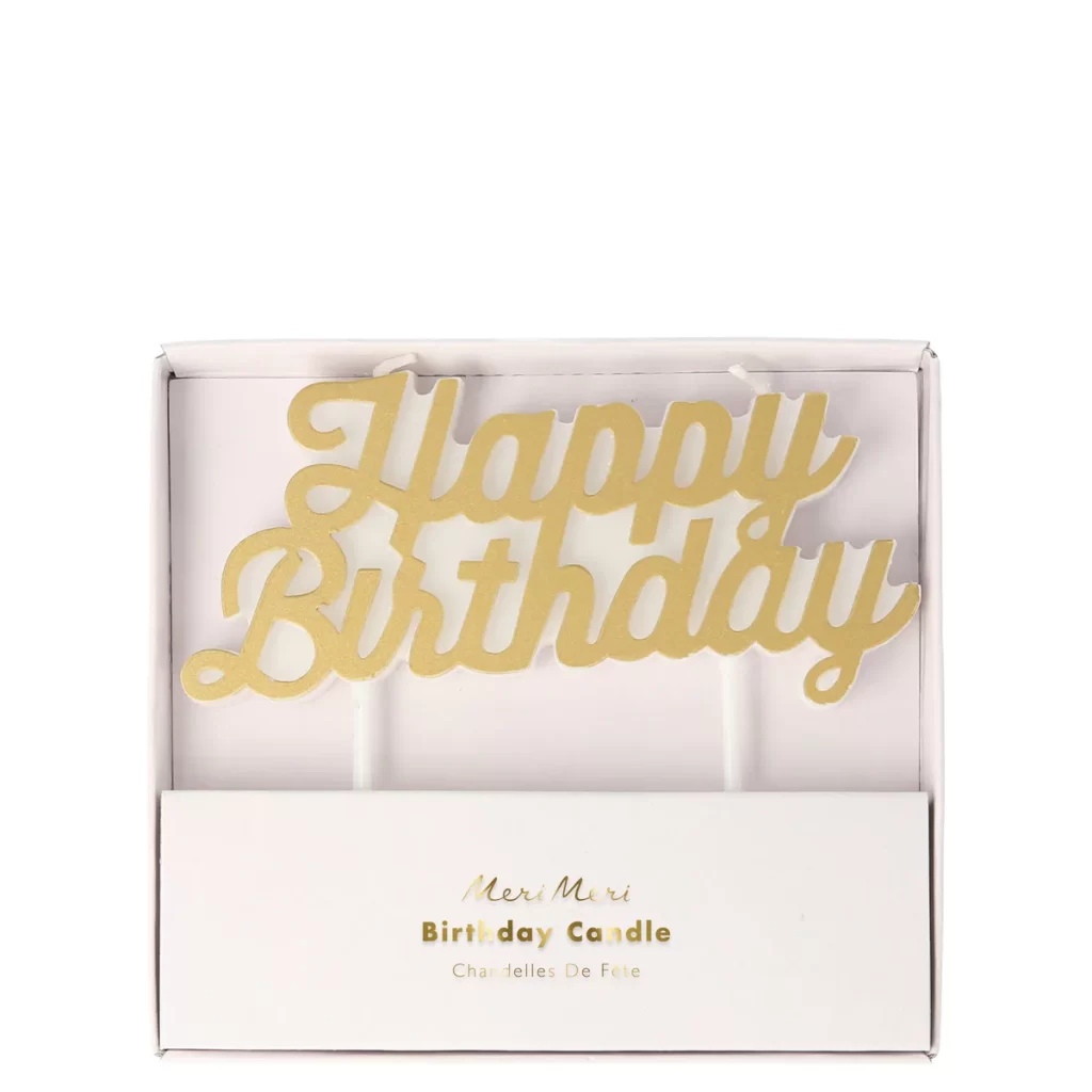 Esta preciosa vela dorada de "Feliz Cumpleaños" es la decoración perfecta para un pastel de cumpleaños especial. Cuenta con dos mechas para que puedas encender el pastel con estilo.
