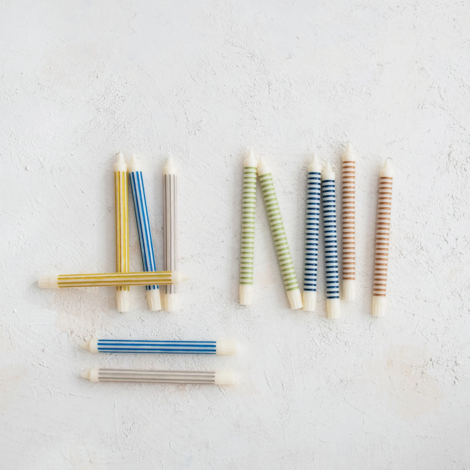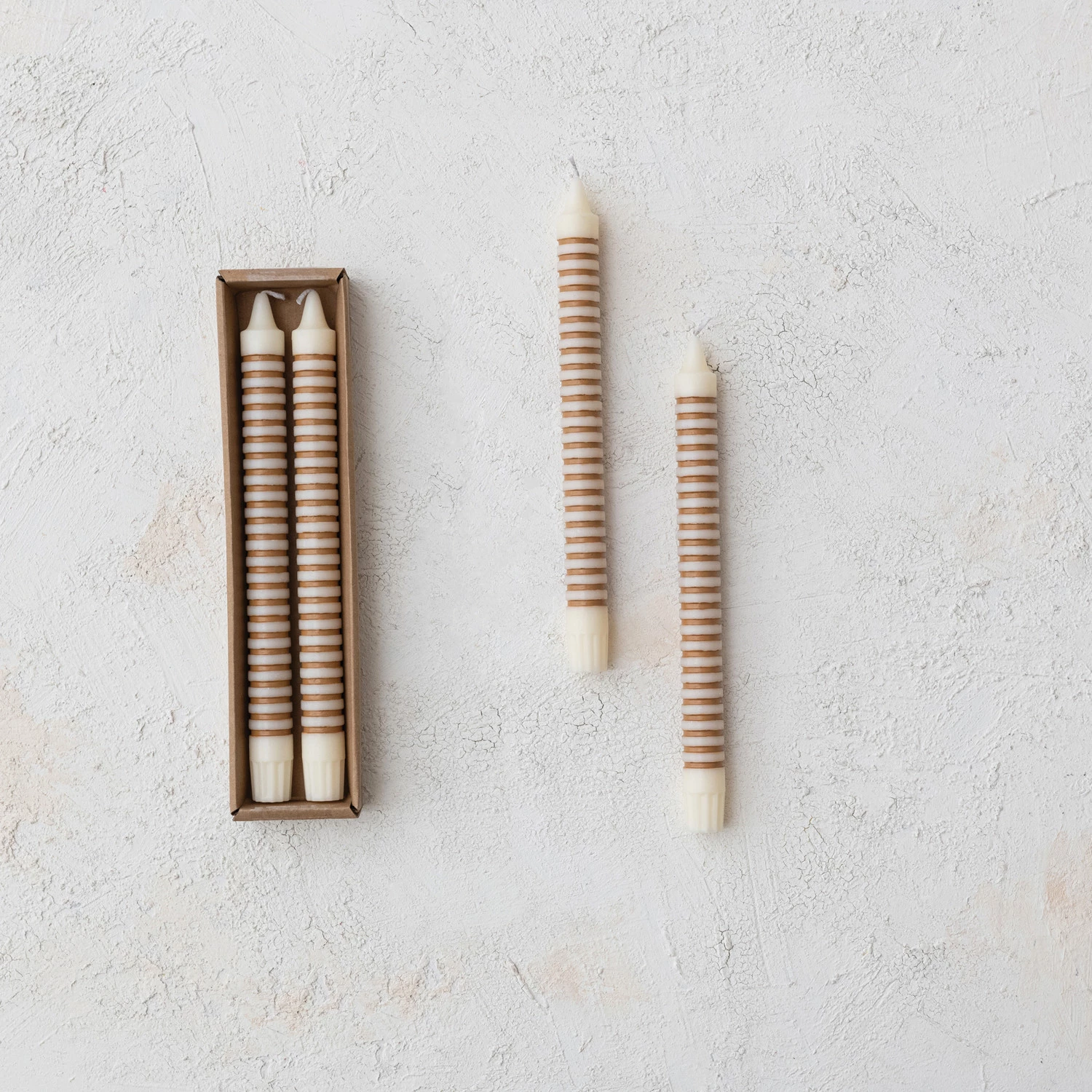 velas cónicas a rayas sin aroma de 10"H en caja, color beige, conjunto de 2 (tiempo de combustión estimado 6 horas)