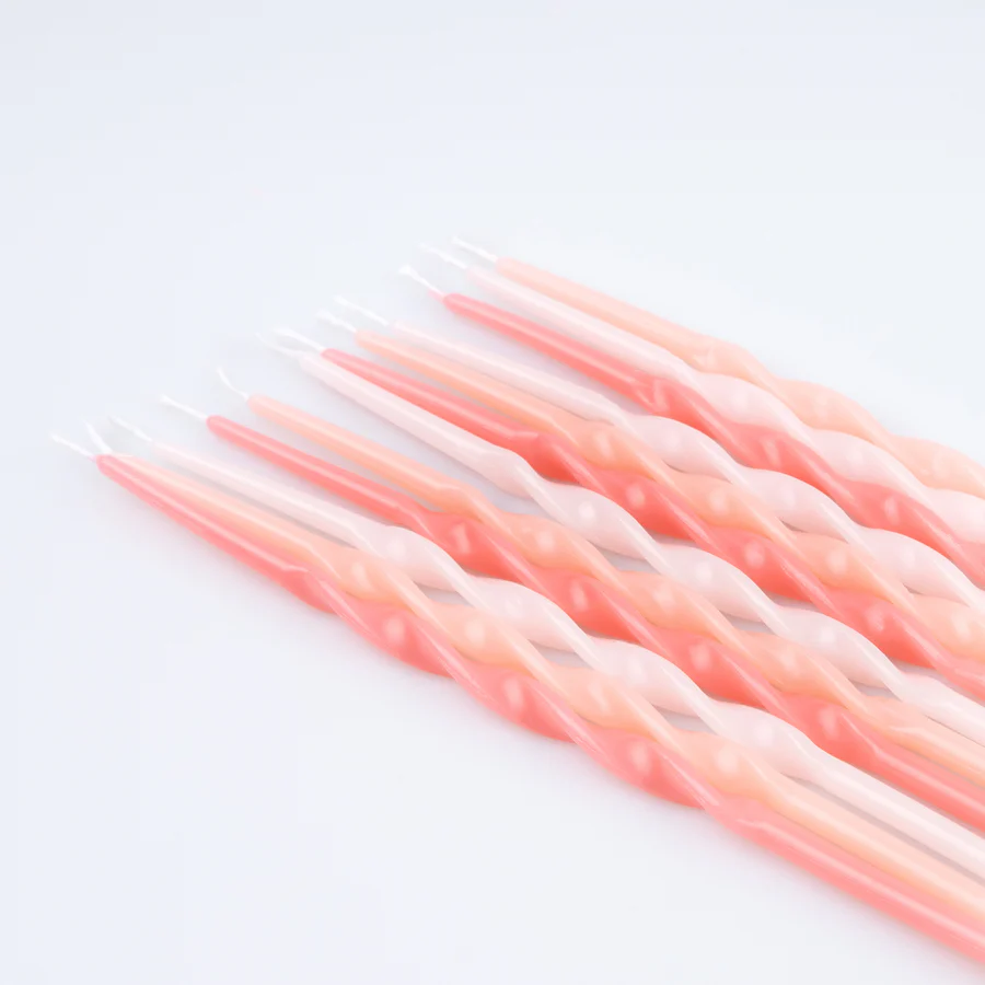 Formas de velas retorcidas Cada set tiene tres colores de cera: rosa, durazno y rosa claro