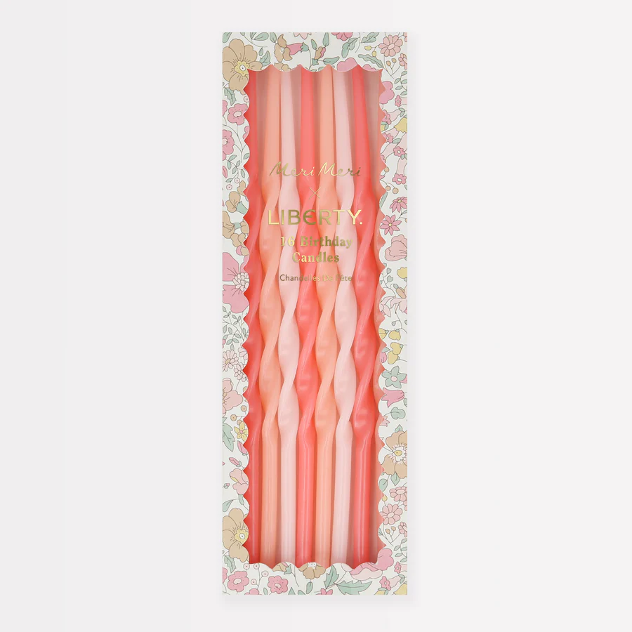 Crea una escena inolvidable para tu fiesta con nuestro exclusivo set de velas elegantes, elaborado en colaboración con Liberty, la icónica tienda departamental de Londres. La combinación de las formas retorcidas, con tonos de durazno y rosa, añadirá instantáneamente un toque especial a tus celebraciones. Perfecto para cualquier ocasión en la que quieras tonos suaves de rosa y durazno, como una fiesta de princesas o una fiesta de hadas. Estas velas de cumpleaños están presentadas de manera hermosa en una caja tipo cerillo con un diseño de estampado de Liberty. Impulsada por el descubrimiento, Liberty ha sido el hogar del comprador artístico desde 1875. Famosa por su diseño vanguardista y por celebrar la artesanía, sus estampados son creados en el corazón de Londres por el estudio de diseño de Liberty.